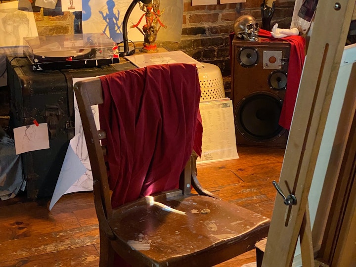 Portrait of Vengeance is a yet-to be completed ultra-low budget short film about an artist struggling with a love interest whom she believes is plagiarizing her. Sets included her apartment/studio and two art galleries.